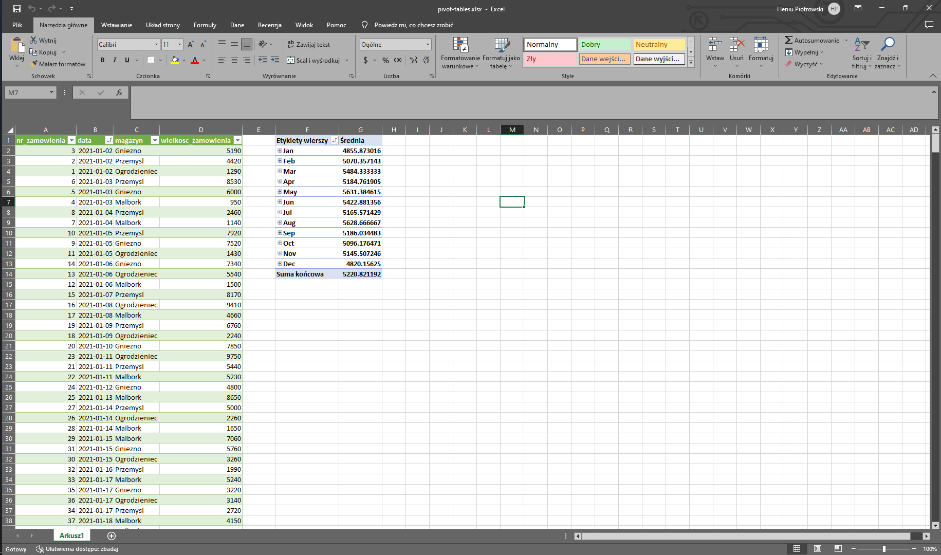 Przerobimy sobie dzisiaj tabele przestawne dostępne w pakiecie MS Excel. Poniżej znajdą Państwo zdjęcie/a obrazujące materiały z kursu na YT oraz plik .xlsx, z którym możecie się Państwo zapoznać. Serdecznie zapraszam!