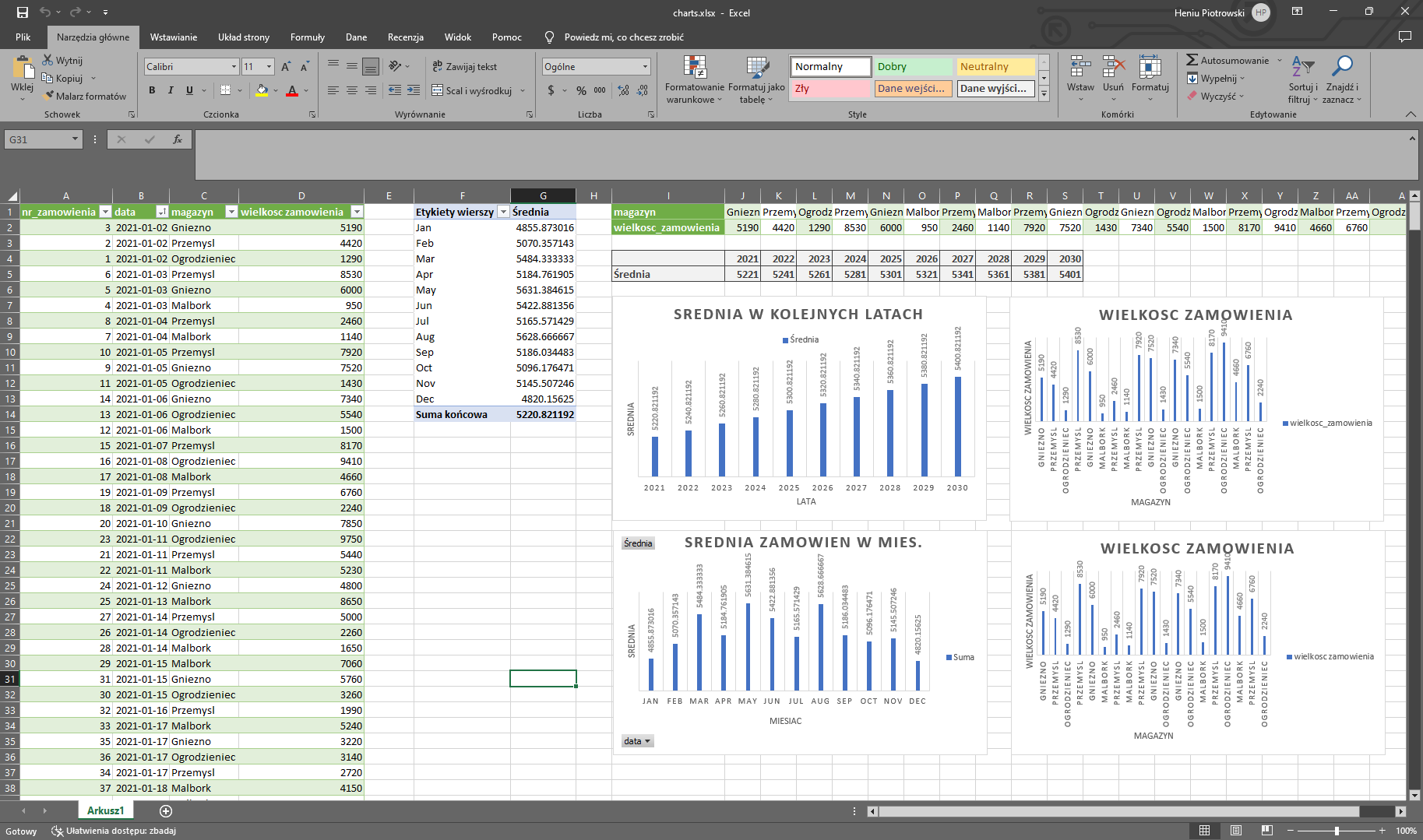 Przerobimy sobie dzisiaj wykresy dostępne w pakiecie MS Excel. Poniżej znajdą także Państwo zdjęcie/a obrazujące materiały z kursu na YT oraz plik .xlsx, z którym możecie się Państwo zapoznać. Serdecznie zapraszam!
