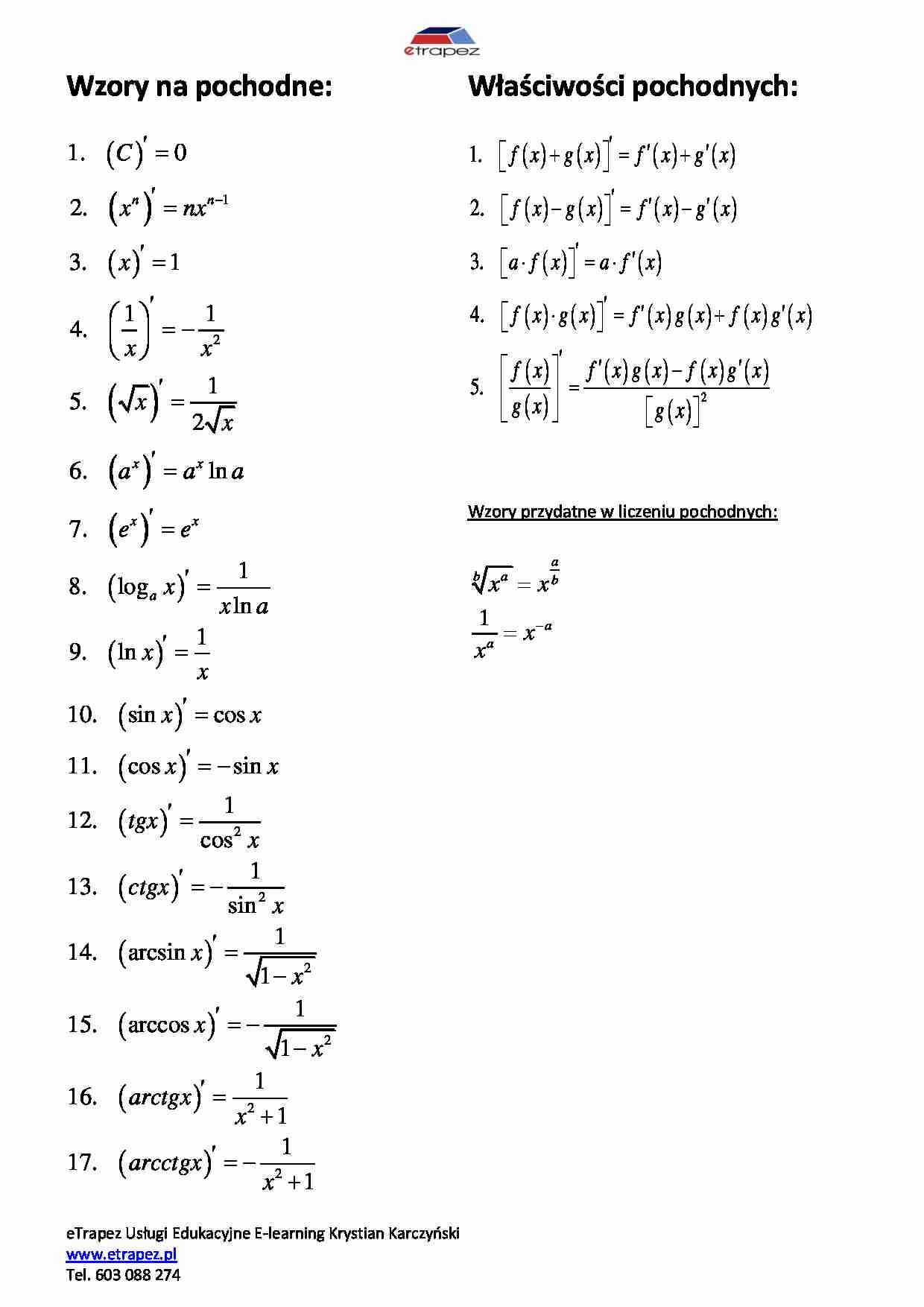 Zacznijmy zatem od samego początku. Czego będziesz potrzebował? Umiejętności logicznego myślenia + wzorów na pochodne podstawowych wyrażeń (tj. pochodna iloczynu, ilorazu, etc...) Zamieszczę poniżej zresztą zdjęcie z karty wzorów, pokazujące co dokładnie mam na myśli 🙂. Zapamiętaj: Nagromadzenia danych -> Sumy Riemanna